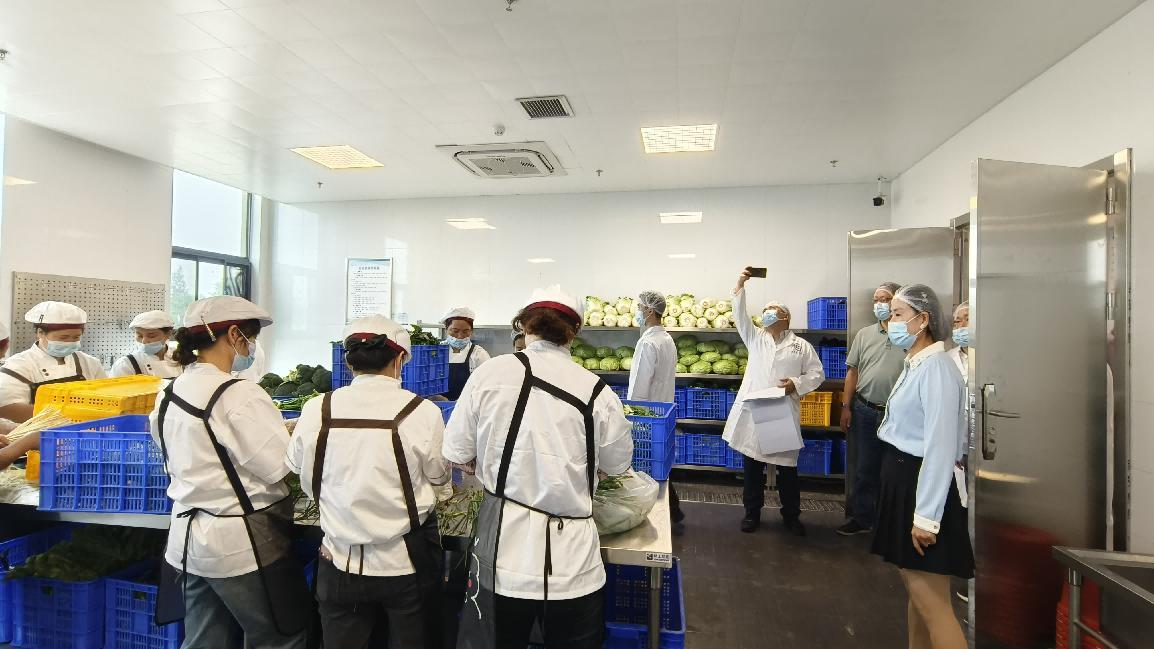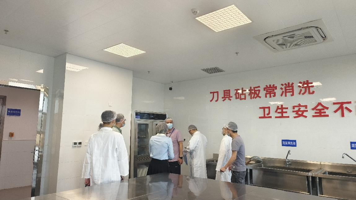 在实地核查环节,工作组深入食堂各功能区域,开展细致核验。在智能管控方面,人脸识别门禁系统有效杜绝了无关人员进入操作区域的风险;智能留样柜具备自动温度记录、留样时间提醒与精准计量等功能,实现了食品留样的全程可追溯,获得工作组的高度认可。在空间布局与硬件配置方面,各功能区动线清晰,严格遵循“不交叉、不逆流”原则,不锈钢厨具及专用消毒设备配置齐全、维护良好,全面符合食品安全操作规范。