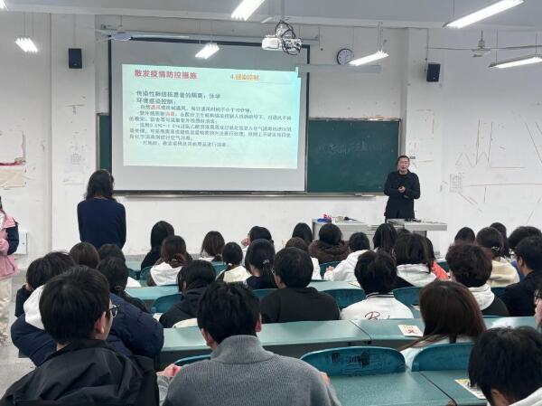 培训还设置了有奖知识问答环节,围绕传染病防治知识和健康政策等内容展开,同学们踊跃参与,现场气氛热烈,在互动中巩固了所学内容,增强了健康责任意识。