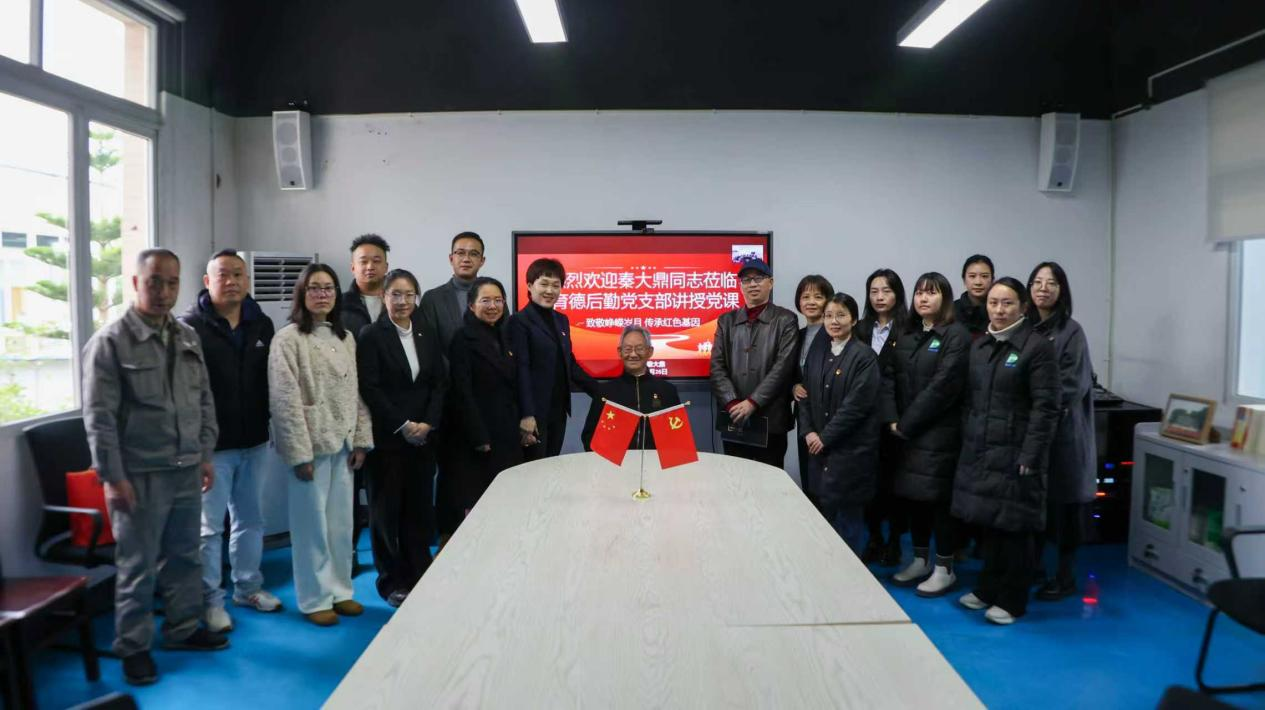 为进一步统一思想认识、凝聚政治共识,创新教育形式、增强组织活力,增强社会责任感和历史使命感。11月26日,中共四川城市职业学院成都育德后勤管理有限公司党支部特邀93岁崇州市委宣传部离休干部秦大鼎同志为育德后勤党支部全体党员及管理人员上了一堂题为“致敬峥嵘岁月 传承红色基因”的党课。