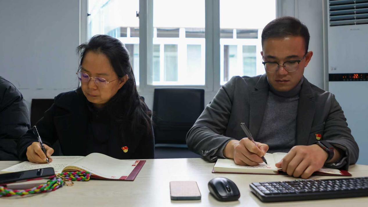 党课结束后,在秦大鼎的带领下,育德后勤党支部全体党员面向党旗庄严宣誓,重温入党誓词。铿锵有力的誓言在会场久久回荡,充分展现了新时代共产党员的坚定信念。