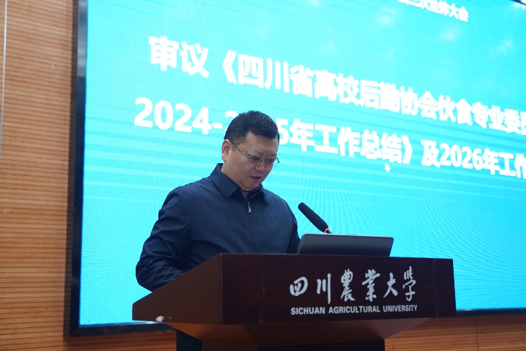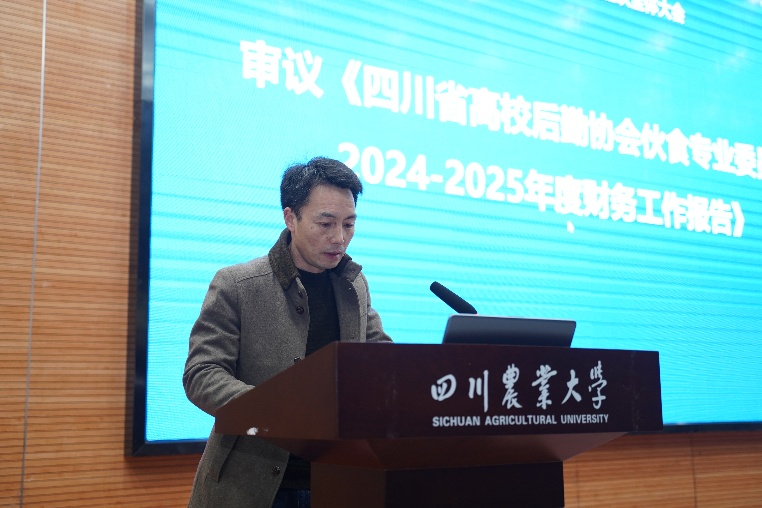 会上,十一届理事会主任、电子科技大学后勤保障部部长赵萌代表十一届工作委员会作《四川省高校后勤协会伙食管理专业委员会2024-2025年度工作报告》及2026年工作计划。2024-2025年,伙专会聚焦高校团餐产业发展与后勤服务提升,充分发挥桥梁纽带与行业自律作用,助力各高校切实筑牢校园饮食安全屏障、开启智慧食堂新篇章、多管齐下共促队伍建设、深化多方联动协同发展,在食品安全保障、行业交流合作、标准体系建设、人才队伍培育等方面取得显著成就,为推动全省高校后勤团餐事业高质量发展、保障师生饮食安全与权益作出了大量有益贡献。四川轻化工大学后勤保障部部长黄斌作《四川省高校后勤协会伙食管理专业委员会2024-2025年度财务工作报告》,经大会审议并通过。