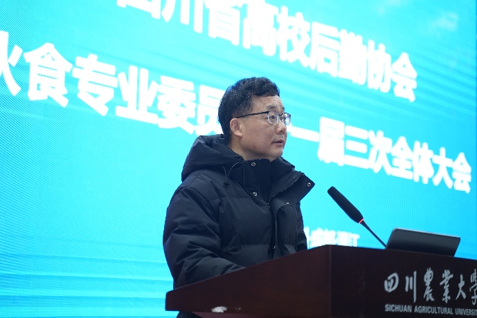 四川农业大学党委常委、副校长李德海代表四川农业大学致辞,对本次会议的顺利召开表示热烈祝贺,期待未来与各兄弟院校深化交流合作,预祝大会取得圆满成功。中国教育后勤协会伙食管理专业委员会副主任姚静仪代表中国教育后勤协会伙食管理专业委员会致辞,对此次大会的召开表示祝贺,对各位同仁的辛勤付出致以诚挚敬意,希望各省市高校能合力构筑伙食工作共享平台,共同提升行业专业化水平,也祝四川高?;锸彻ぷ髟俅醇鸭?。