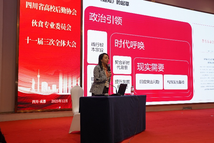 会议还邀请了中国教育后勤协会伙食管理专业委员会副主任姚静仪、四川旅游学院教授梁爱华作专题讲座,邀请了四川大学、四川农业大学、长江职业技术学院3所高校作食堂管理经验交流发言。